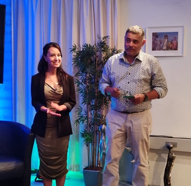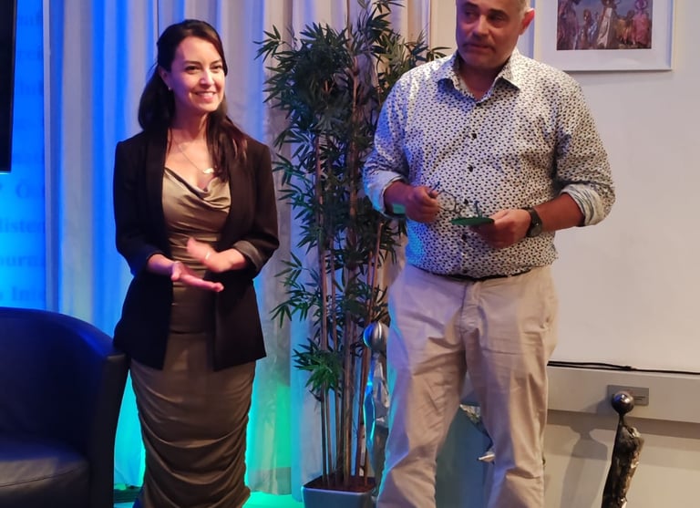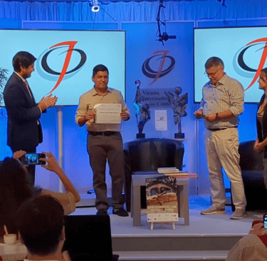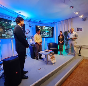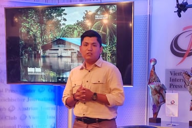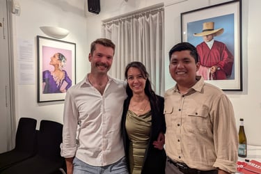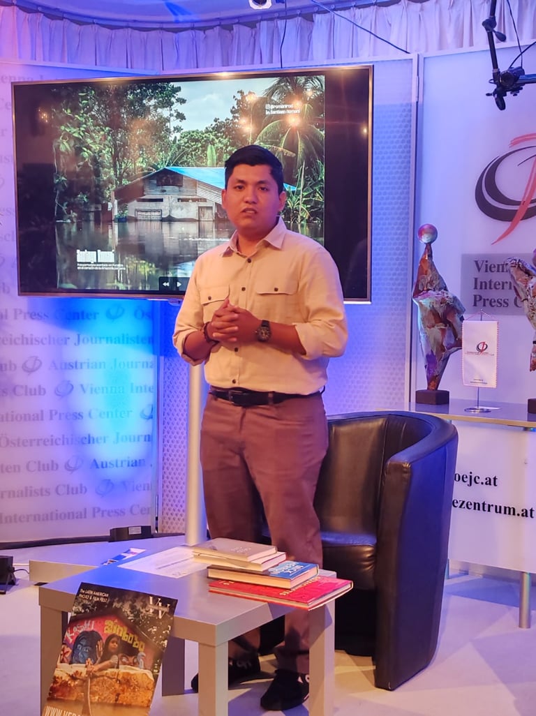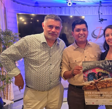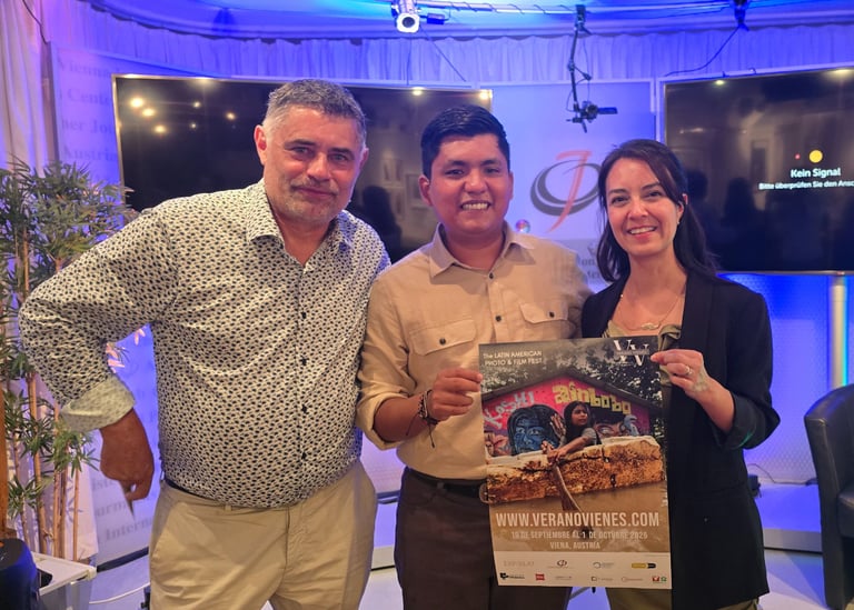 Entre los invitados especiales destacó la participación del joven fotoperiodista Santiago Romaní, ganador del Concurso de Fotografía Documental Verano Vienés 2025, quien viajó desde Perú para recibir su reconocimiento de manos de Omar Salvatierra y Eloina Viveros. Durante su intervención, Romaní presentó su serie “Ucayali bajo el agua: crónica visual de las inundaciones en Pucallpa”, un trabajo que documenta con sensibilidad y rigor las consecuencias de las recientes inundaciones en la región amazónica del Perú.