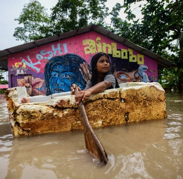Las imágenes de Romaní reflejan la devastación provocada por el desborde del río Ucayali, resultado de lluvias intensas y prolongadas que afectaron gravemente a la provincia de Coronel Portillo. Más de 4,000 personas resultaron afectadas y 2,186 familias fueron damnificadas, con pérdidas en cosechas, viviendas e infraestructura básica en los distritos de Callería, Manantay y Yarinacocha. A través de su lente, el fotógrafo ofrece un testimonio visual de la vulnerabilidad climática y humana de la Amazonía peruana, así como de la resiliencia de sus comunidades.